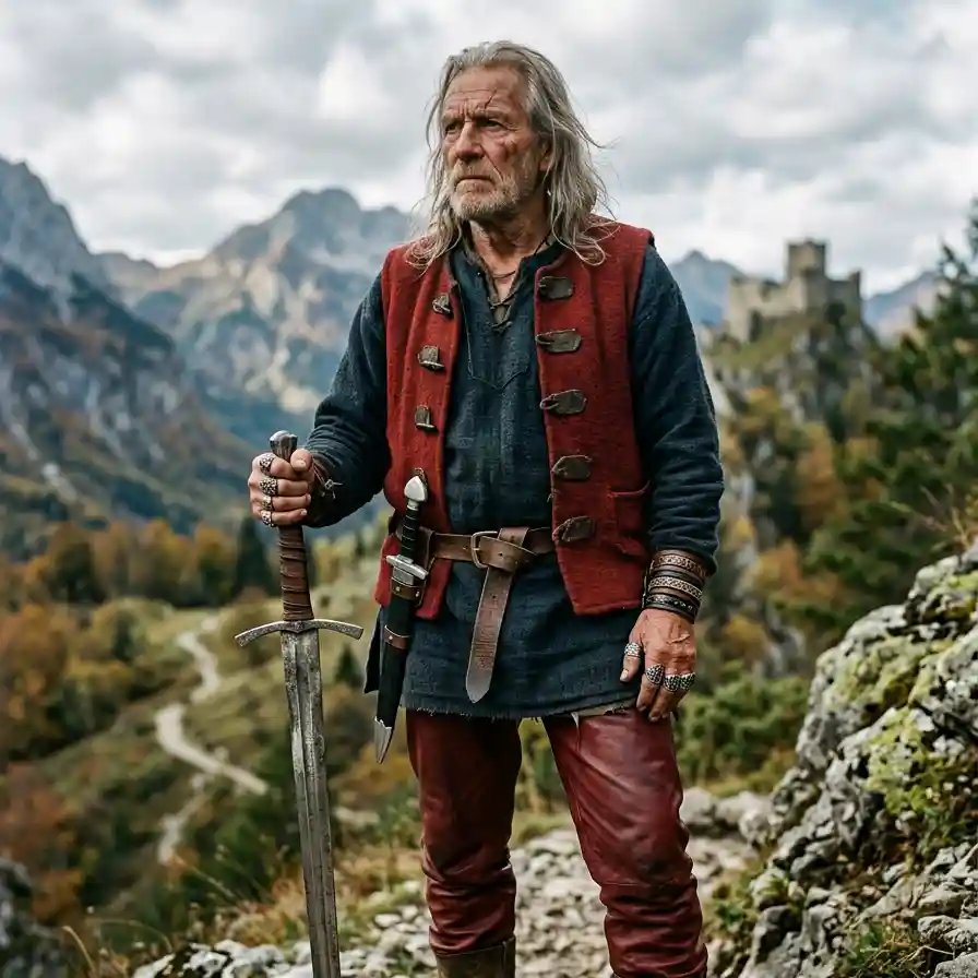 In seinen jüngeren Jahren war er ein tapferer Krieger. Nach vielen Jahren der Wanderschaft hat er die dunkelhaarige Maid Aleseia geehelicht und mit ihr gemeinsam den verfallenen Hof wieder instand gesetzt.